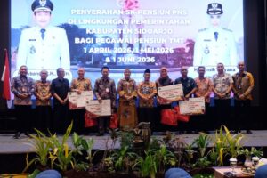newsnoid.com, Sidoarjo- Pemerintah Kabupaten Sidoarjo secara simbolis menyerahkan Surat Keputusan Purna Tugas kepada 141 Pegawai Negeri Sipil di lingkungan dengan Terhitung Mulai Tanggal Bulan April, Mei dan Juni, pada hari Kamis, (9/4/2026), bertempat di Hotel Luminor Sidoarjo.